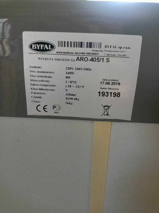 Nowa zamrażarka przeszklona z ukośną szybą przesuwną BYFAL ARO-405/1S. Doskonała do przechowywania produktów mrożonych z widocznym dostępem dla klientów.Zamrażarka przeszklona z ukośną szybą przesuwną ARO-405/1 S BYFAL